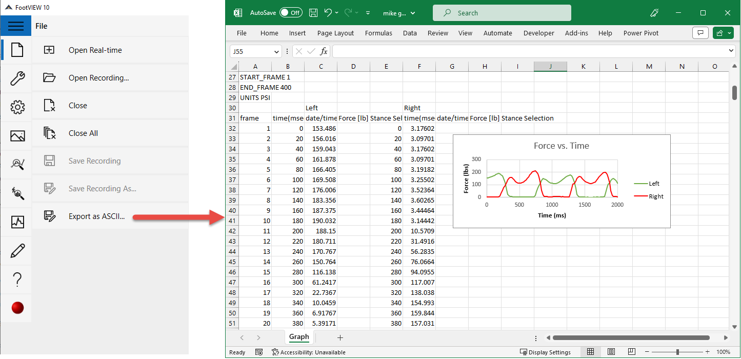 FootVIEW Pro includes all the functionality of FootVEW with additional features designed for dynamic activities and research in a biomechanics library