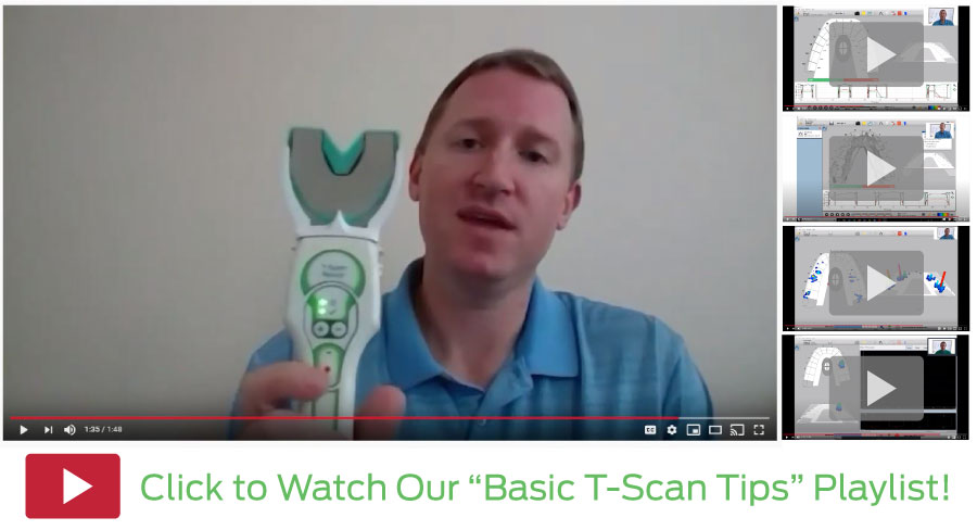 Our Regional Sales Managers have compiled a YouTube Playlist of T-Scan user tips. Whether you're in the early stages of collecting and interpreting data, or you're interested in learning how to link T-Scan Novus with other digital dentistry technologies (intraoral scanners, EMG technology, etc.), these videos are a great starting point.